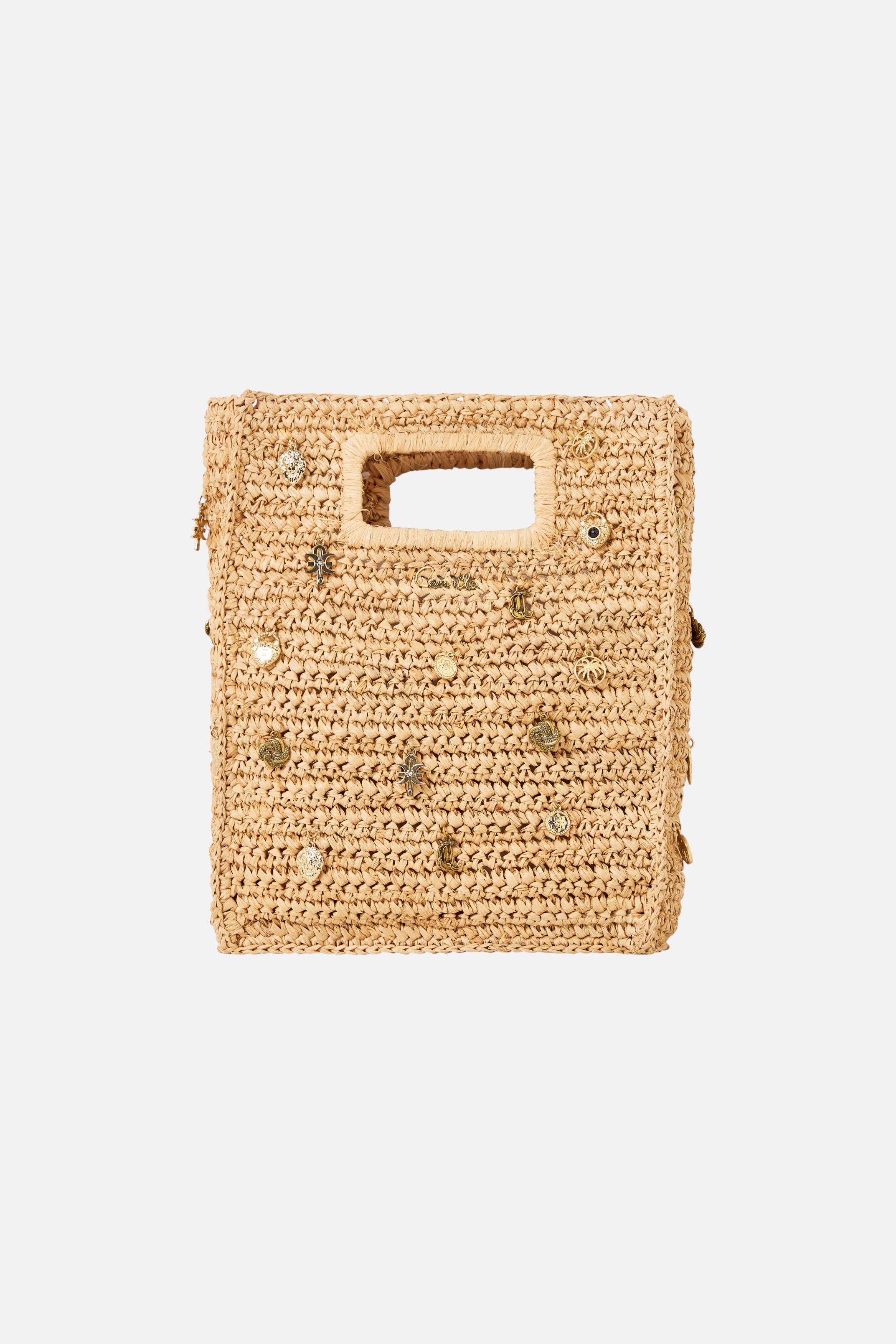 Raffia Mini North South Tote with Charms - $495